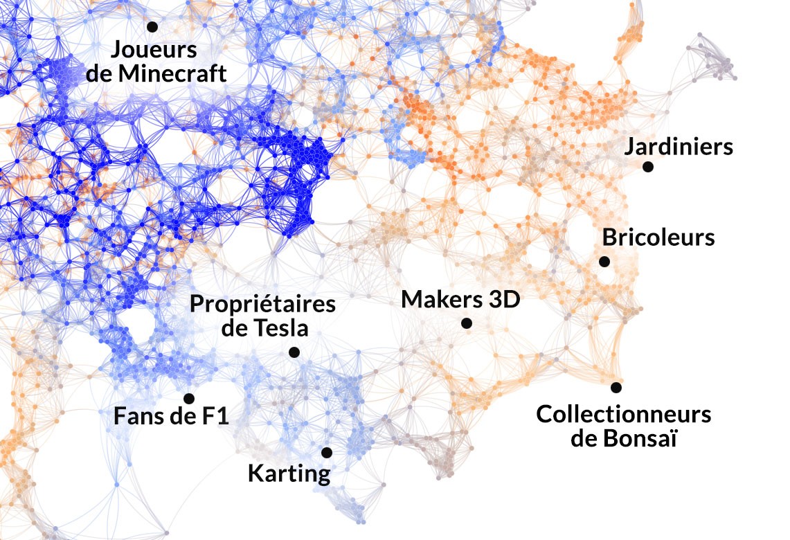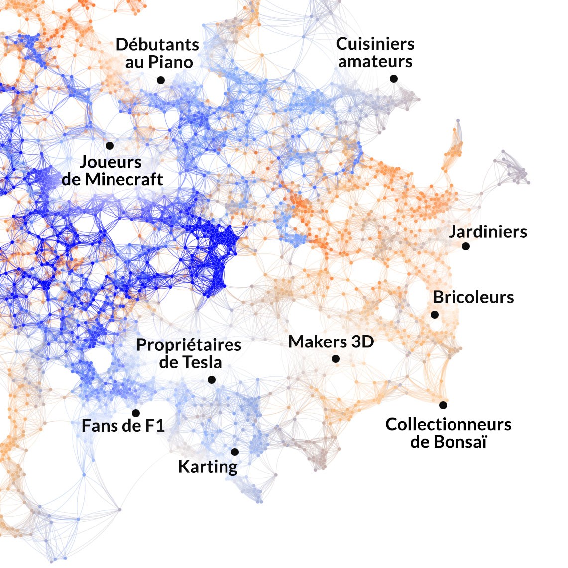 La Market Research traditionnelle ou les cabinets de conseils produisent des fiches démographiques. Nous cartographions ce que vos audiences font réellement en ligne : qui elles suivent, ce qu'elles partagent, quelles communautés se recoupent. Cette analyse de porosité révèle des micro-segments invisibles aux méthodes déclaratives — et c'est sur ces segments que se construisent les positionnements différenciants.